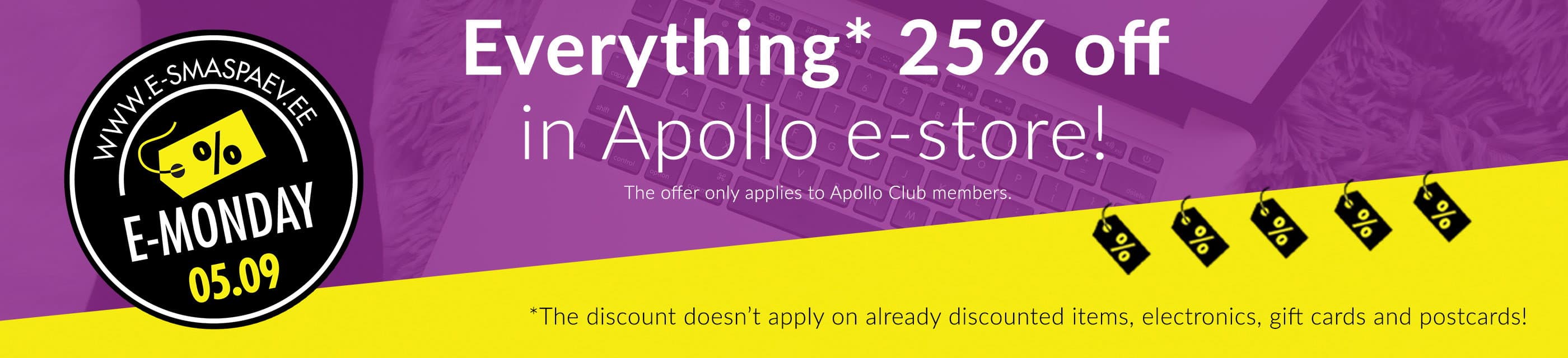 Everything is 25% off in Apollo e-store on September 5th! Now is the right time to purchase items you have been wanting for a long time.