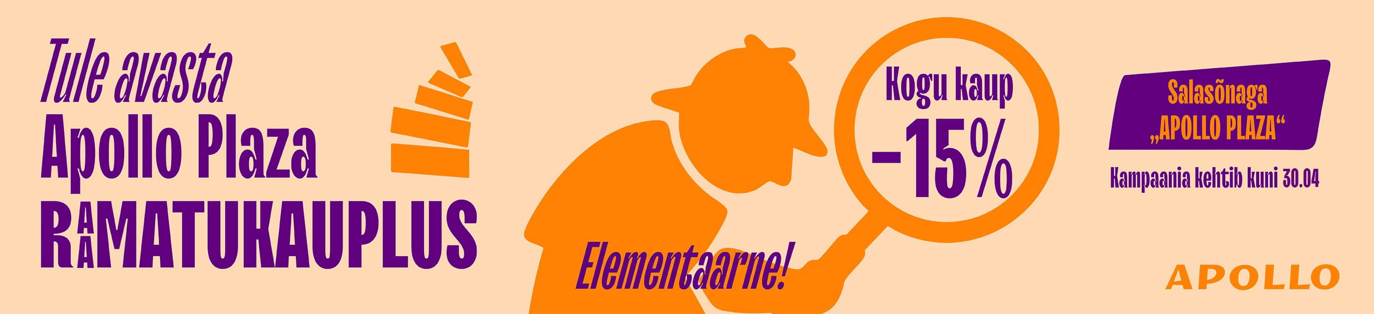 Raamatusõpradel on põhjust rõõmustada, sest kogu aprillikuu vältel on Apollo Plaza raamatukaupluses täishinnaga kaup -15%!