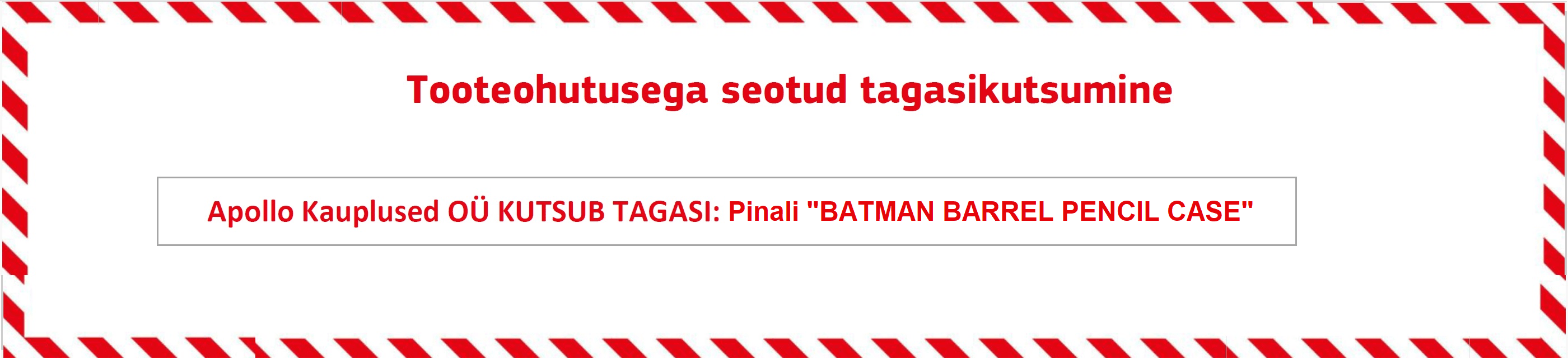 Anname teada, et Apollo Kauplused OÜ kutsub tagasi toote Pinali BATMAN BARREL PENCIL CASE