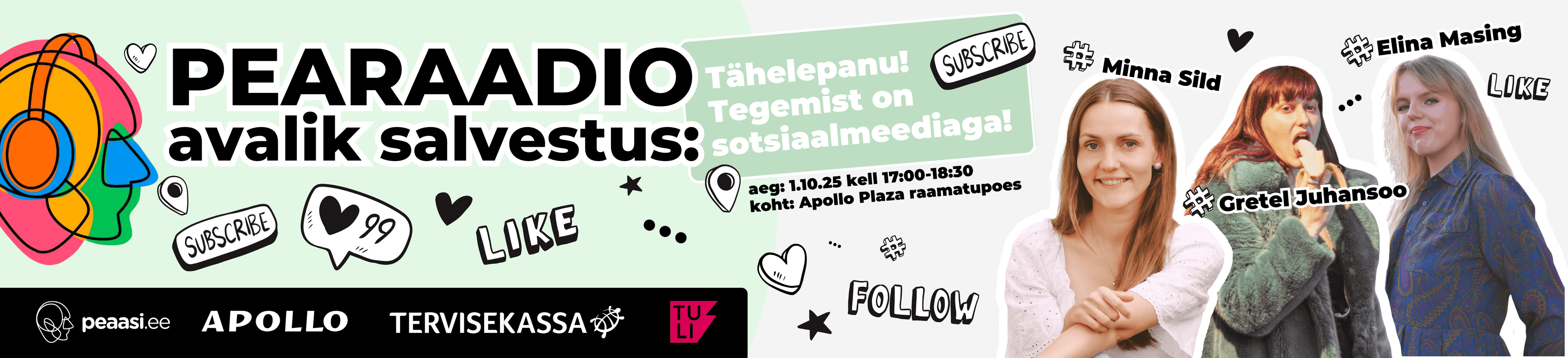 1.10 kell 17 toimub Plaza Apollos pearaadio avalik salvestus „Tähelepanu! Tegemist on sotsiaalmeediaga!“.