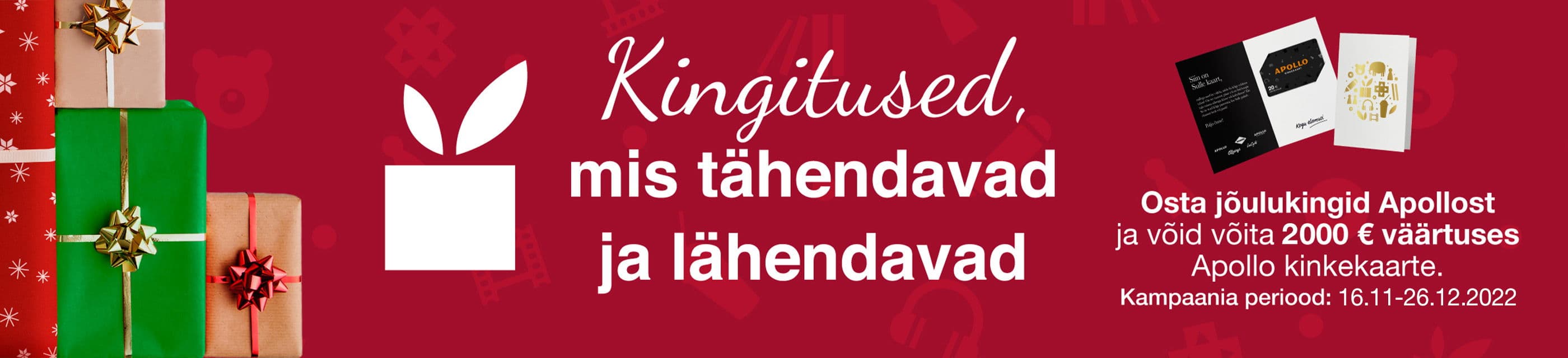 Lisaks loosime kõigi jõulukingituse ostjate vahel välja 2000 € väärtuses Apollo kinkekaarte.