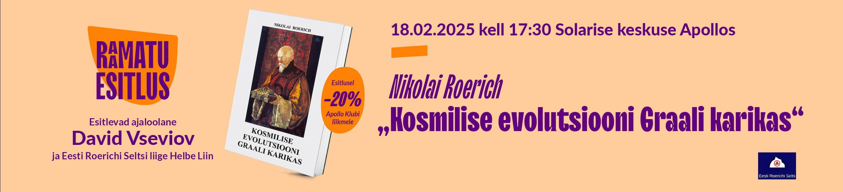 18.02 kell 17:30 toimub raamatu „Kosmilise evolutsiooni graali karikas“ esitlus. Esitlevad ajaloolane David Vseviov ja Eesti Roerichi Seltsi liige Helbe Liin.