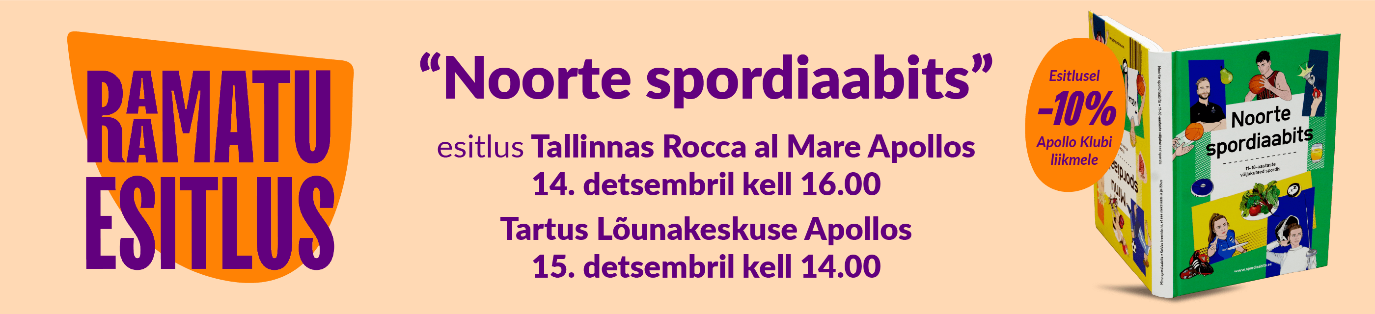 Detsembris toimuvad Tartu Lõunakeskuse Apollos ja Rocca Al Mare Apollos raamatu „Noorte spordiaabits“ esitlused.