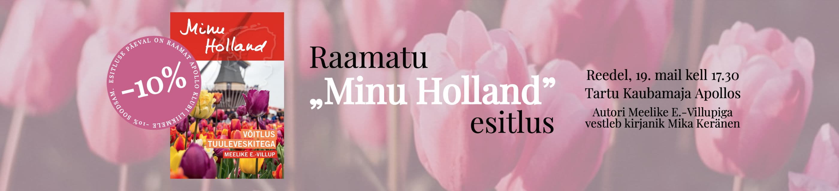 Ootame sind reedel, 19. mail, kell 17:30 Meelike Eenpuu-Villupi raamatu „Minu Holland“ esitlusele Tartu Kaubamaja Apollos!