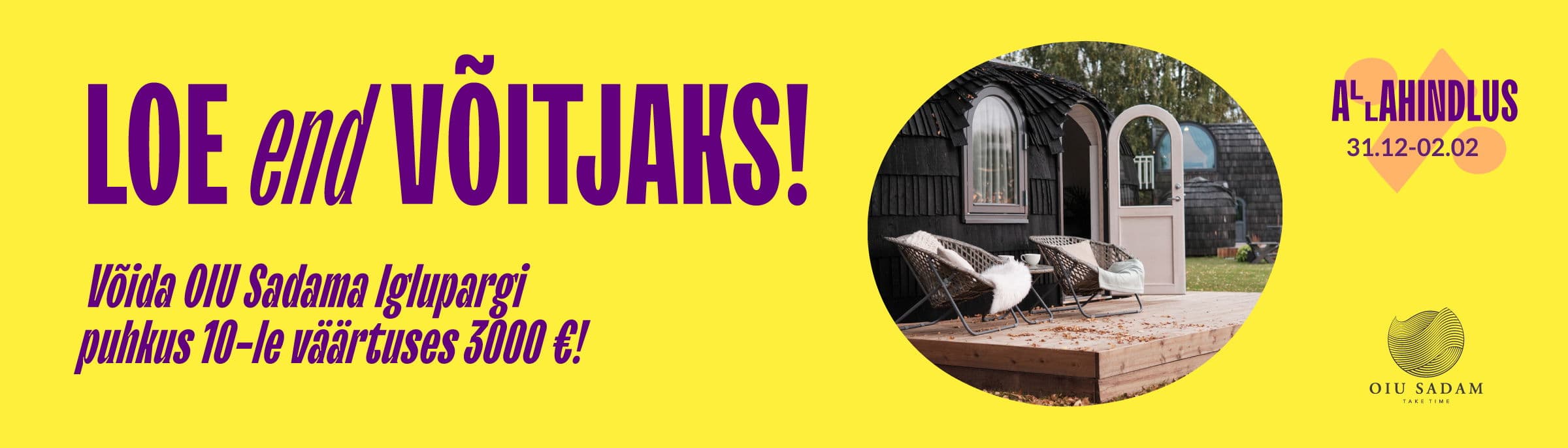 Kampaania peaauhinnaks on mõnus puhkus OIU Sadama Iglupargis 10-le! (väärtus 3000 €)