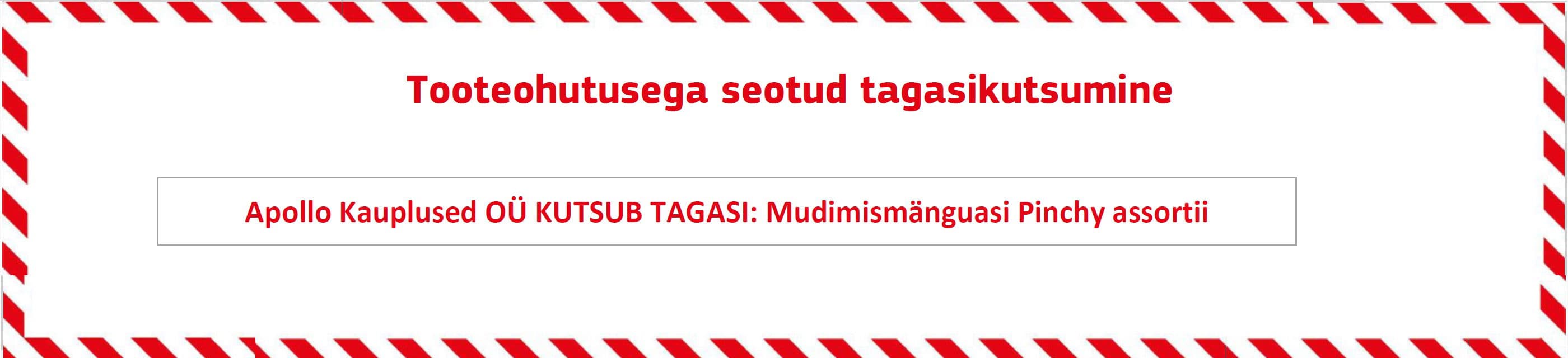 Anname teada, et Apollo Kauplused OÜ kutsub tagasi toote "Mudimismänguasi Pinchy assortii".