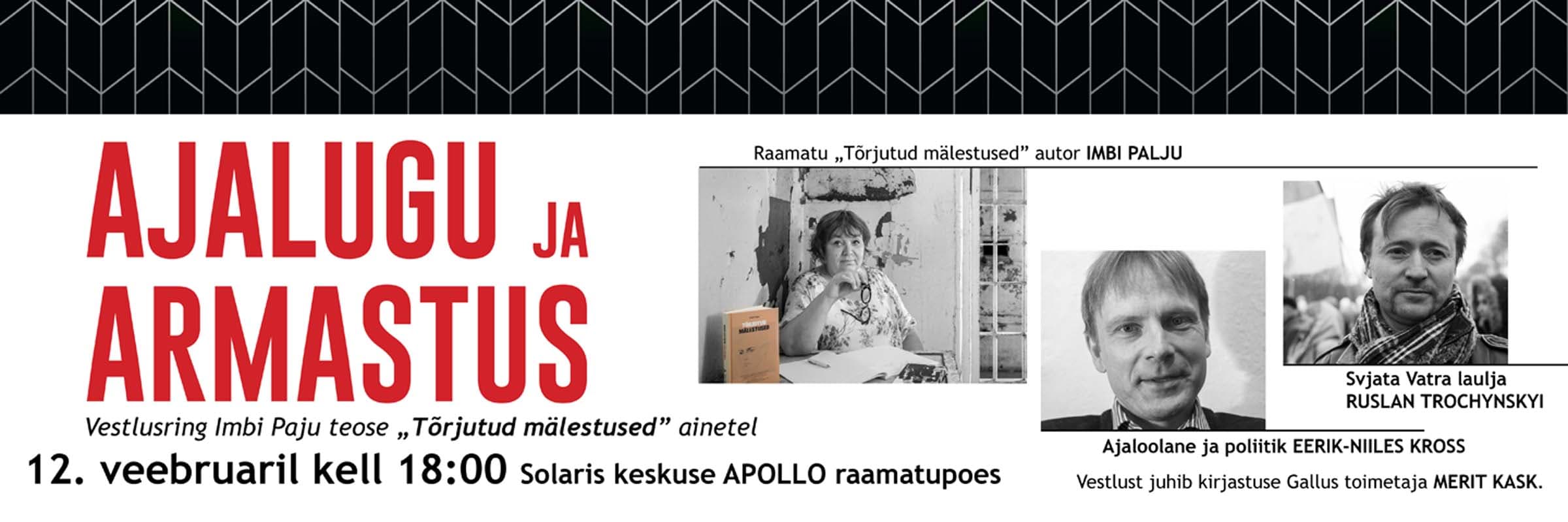 Tule Imbi Paju raamatu "Tõrjutud mälestused" raamatuesitlusele 12. veebruaril kell 18 Solarise Apollosse.